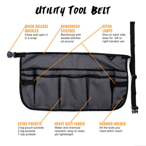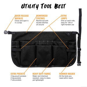 Fully adjustable with quick-release buckles - close and open it in a snap, ergonomically designed to distribute weight evenly across your body avoiding any strain when reaching out for your tools.