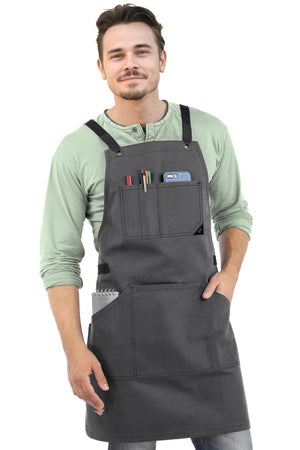 PROFESSIONAL FEATURES – Danish seams: no cheap stitches scratching your skin. Double-stitched utility pockets. Two hanging loops. Long lasting anti-rust and anti-allergy Zamak-coated hardware – including vintage brass harness guaranteeing the apron will stay in place. 100% cotton straps to avoid allergies and make you feel comfortable. This apron is a true workwear, fitting most bodies and activities, offering you great comfort, durability and functionality. Sleek apron for a professional look.