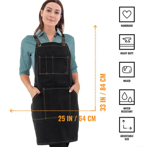 EXCLUSIVE WAXED CANVAS – This apron is crafted with our special and strong Heavy-Duty, Water Resistant16 oz Waxed Cotton Canvas, a tough yet flexible material that shields and allows comfortable movement. Unlike other bulky waxed aprons,it's lightweight, practical, and ready to use, preserving your clothes and keeping you clean.Provides long-lasting protection and peace of mind year after year.