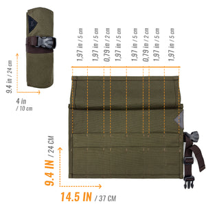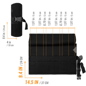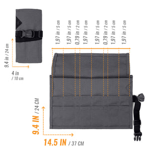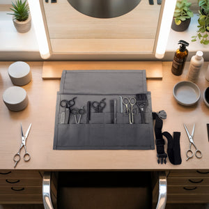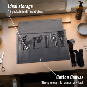 Dimensions – This Scissor Roll measures 14.5" x 9.4" (37 x 24 cm). Includes 16 multi-size pockets: six (5x10 cm), six (5x16 cm), two (2x16 cm), and two (2x10 cm)—ensuring a snug fit for most shears and accessories.