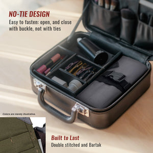 Secure & Portable – Heavy-duty straps with a sturdy buckle keep tools tightly rolled and protected. The quick-fastening design allows easy access, making it a reliable choice for busy stylists and barbers on the move.