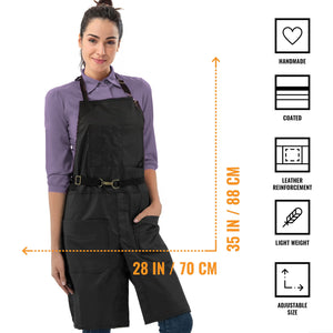 PROFESSIONAL STYLE – This apron is a true workwear, fitting most bodies and activities, offering you great comfort, durability, and functionality. It has a clean design, with many utility pockets: easy access phone and pencil pockets on the front chest, and large hand pockets to fit all the tools and accessories that you need. Sleek apron for a professional look, and functional & stylish metal hardware.