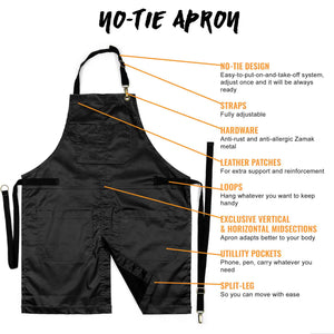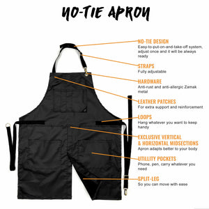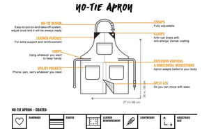 NO-TIE, EASY-FASTENING DESIGN – This apron is perfect for you who doesn’t like ties or bows: it comes with a clasp on one side of the waist strap and a ring on the other so you can fasten it in a snap. It's also designed with SPLIT-LEG with coverage going from chest to knee, fully adjustable for unisex sizing.