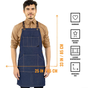 RAW FABRIC, UNIQUE STYLE – Our aprons are handcrafted with raw fabric - a more sustainable material that lasts more because it hasn't gone through any industrial or chemical finish process. For that reason, it also has a bigger shrinkage rate - 5% to 8% - if washed in hot water or tumble dry. After weeks of wear and washes, natural marks may occur leaving your apron even more personal and unique, just like you.