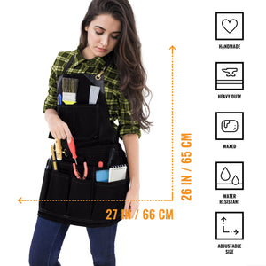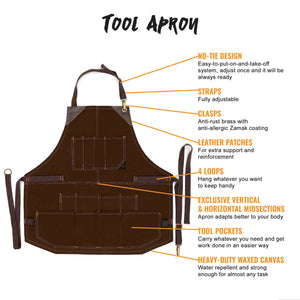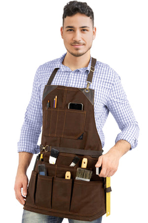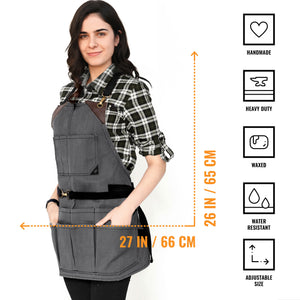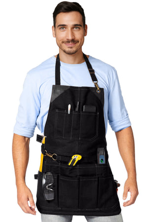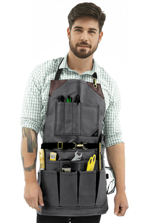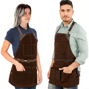 PROFESSIONAL STYLE – This apron is a true workwear, with many double stitched utility pockets to help you get your work done in an easier and more organized way. Danish seams - no cheap stitches scratching your skin. Genuine leather reinforcements for extra support. Durable anti-rust anti-allergy Zamak-coated hardware. 100% cotton straps to avoid allergies and make you feel comfortable. Sleek apron for a professional look, and functional & stylish metal hardware.