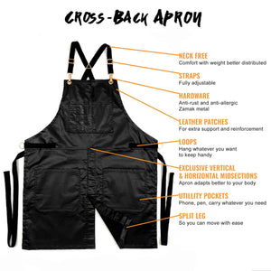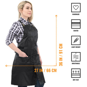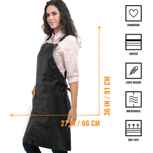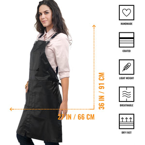 COMFORT AND ADJUSTABLE DESIGN – Prevent neck pain with our adjustable CROSS BACK strap design. The apron coverage goes from chest to mid-shin with split-leg.