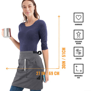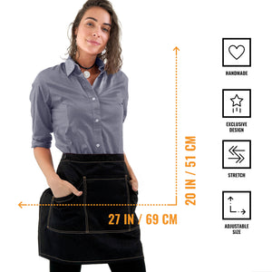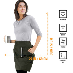 HANDCRAFTED, DURABLE QUALITY – Exclusive design, handmade with visible strong seams in mid-weight Twill with Elastane – strong and easy maintenance. Our Half-Apron has 3 double-stitched big utility pockets, 2 functional loops, 100% cotton straps to avoid allergies and stretch to help you move freely with style.