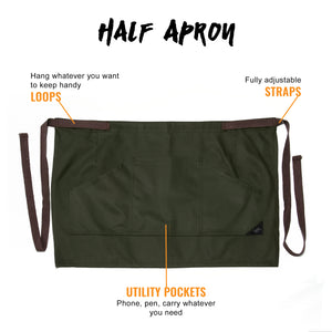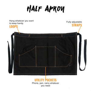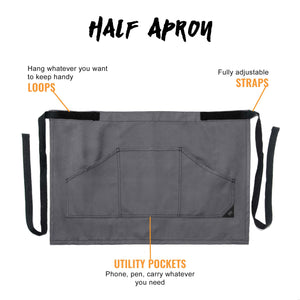 PROFESSIONAL STYLE – This half-apron is a true workwear, fitting most bodies and activities, offering you great comfort, durability, and functionality. It has a professional design, with many utility pockets and a modern look.