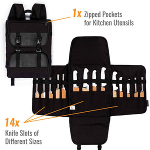 Different from other knife-bags, that hide your tools making it hard for you to find or visualize them.Different from knife-rolls, that are hard to carry around and don't hold anything besides cutlery.