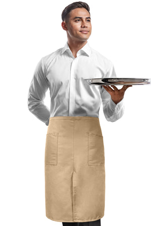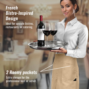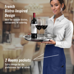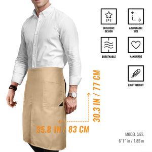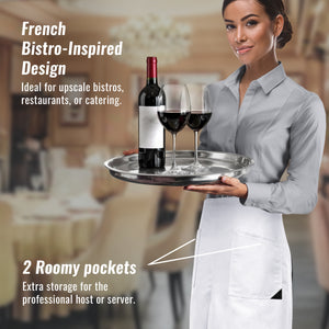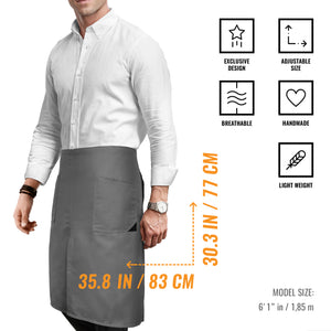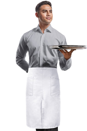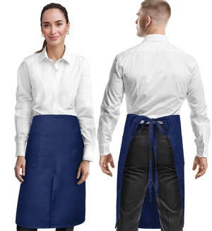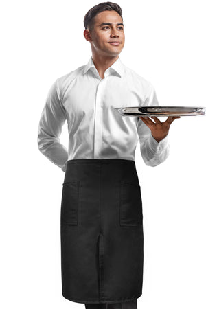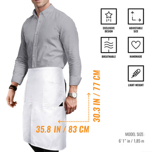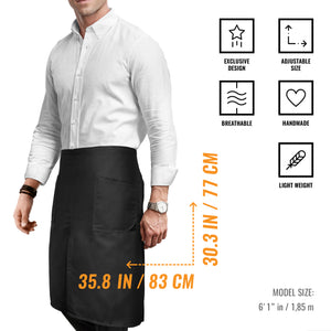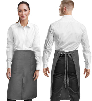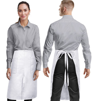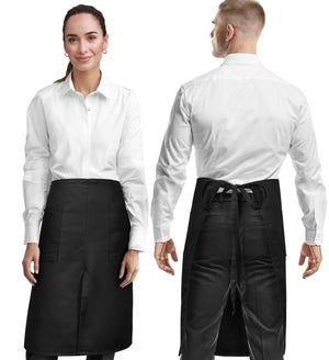 Maior Comprimento com Fenda Frontal –Mesmo sendo longo, a fenda de perna deixa este avental perfeito para ambientes movimentados onde a mobilidade é fundamental. Seu estilo versátil agrega valor ao seu uniforme de trabalho, oferecendo elegância e praticidade para garçons, chefs e profissionais de hospitalidade.
