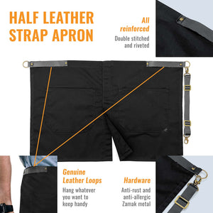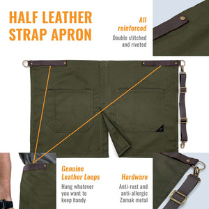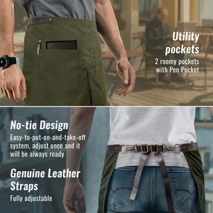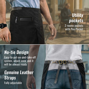 Meio Avental - Alças e Alças de Couro Genuíno - Perna Dividida - Restaurante, Garçons