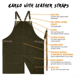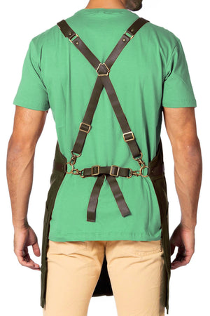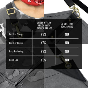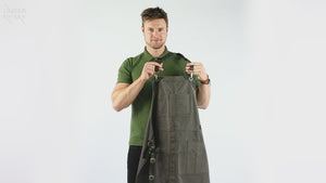 - Todas as Costuras Principais são Duplas e Travetadas - alças de suporte laterais e áreas sujeitas a maior estresse são reforçados com rebites, tornando o avental ainda mais resistente.