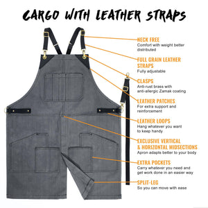 - Vários Bolsos Reforçados -para todas as suas ferramentas e utensílios essenciais, 2 Alças de suporte laterais reforçadas com rebites para que você possa pendurar o que quiser.