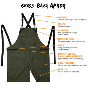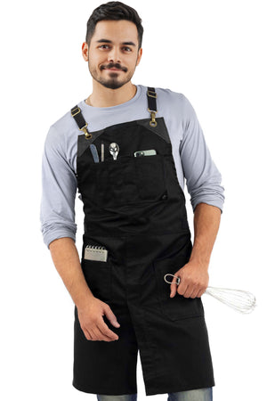 Aventais para Chef – Alças Cruzadas, Acabamento em Couro, Fenda de Perna – Chef, Bartender, Churrasco, Loja, Barbeiro, Salão