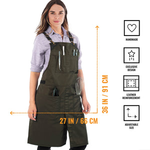 - Alças Cruzadas, Reforço de Couro, Bolsos Utilitários - sarja exclusiva de 280 gramas, duradoura, difícil de manchar, fácil de limpar. Alças Cruzadas que ficam no ombro para maior conforto.