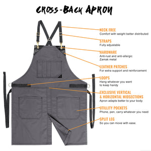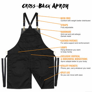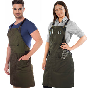 Chef Aprons - CrossBack, Leather Trim, Split - Chef, Bartender, BBQ, Shop, Barber, Salon