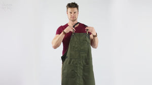 WASH AND CARE – This apron is tough yet easy-care – Machine-wash cold. Do not bleach. Hang dry. Warm iron only reverse side if needed. Like any other denim, the first few times you wash your apron, you should wash it by itself to avoid possible dye bleeding onto your other clothes. Detach the straps and wash/dry them separately, for machine-wash and tumble-dry use a laundry bag.