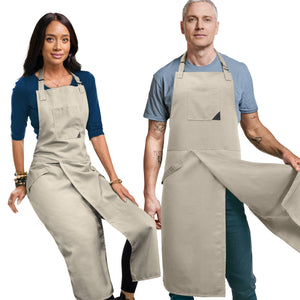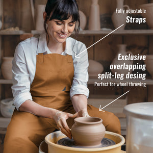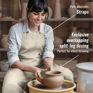 - Grande Cobertura Frontal com Fenda de Perna Sobreposta - protege ao mesmo tempo que permite o movimento completo das pernas. Ideal para ceramistas, professores de arte, escultores, roda de oleiro, torno de cerâmica, pintura, escultura, oficinas, estúdios e escolas.